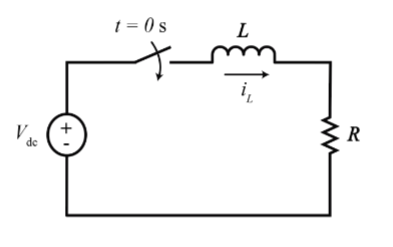 $$ \begin{gathered} I_L(t) = -\frac{V_{dc}}{R} e^{-\frac{t}{\tau}} + \frac{V_{dc}}{R} \\[15pt] \boxed{I_L(t) = \frac{V_{dc}}{R} \left(1 – e^{-\frac{t}{\tau}}\right)} \end{gathered} $$