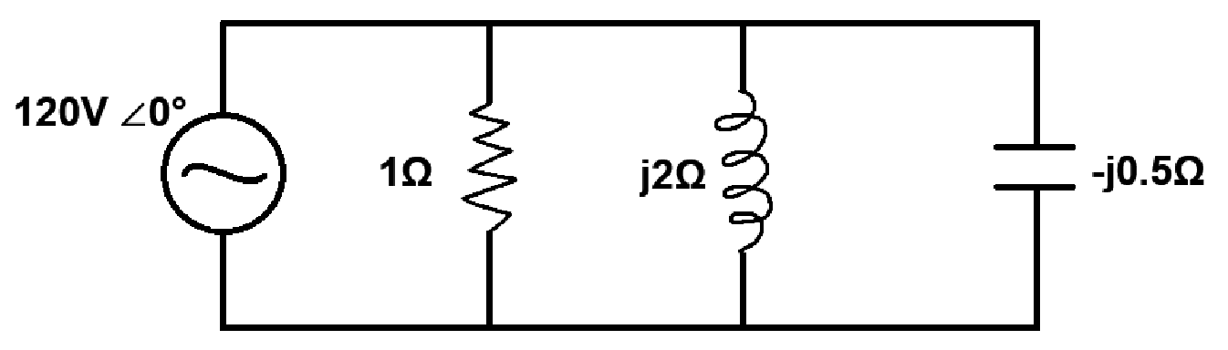 $$ \begin{gathered} \begin{aligned} Z_{tot} &= 3 + j8 – j4 = 3 + j4 \quad \longrightarrow \quad \sqrt{3^2 + 4^2} = 5, \quad \arctan\left(\frac{4}{3}\right) = 53.13^\circ \\[15pt] Z_{tot} &= 5\Omega \angle 53.13^\circ \quad \longrightarrow \quad Y_{tot} = \frac{1}{5 \angle 53.13^\circ} = 0.2\text{ S} \angle -53.13^\circ \end{aligned} \end{gathered} $$