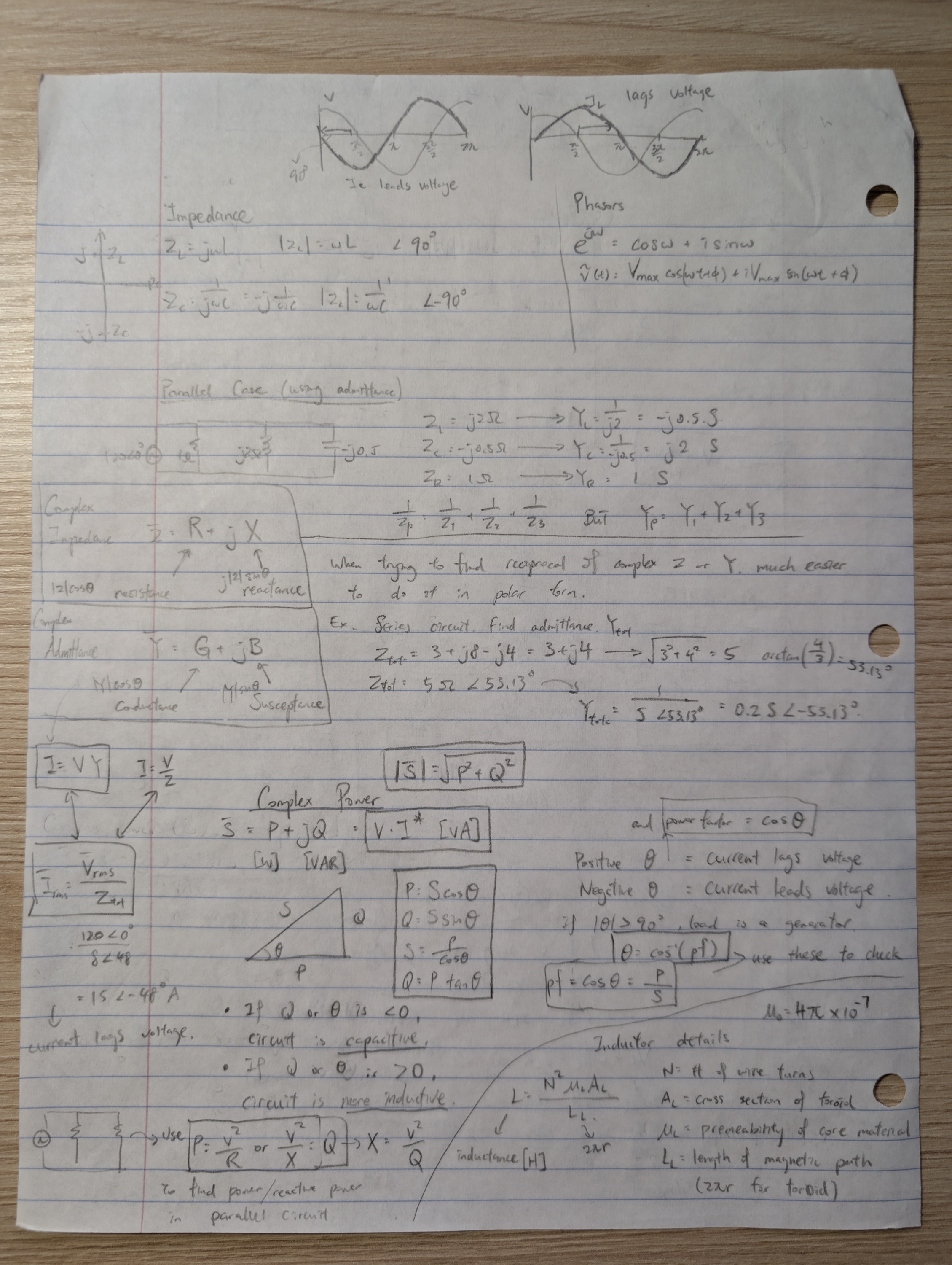 $$ \begin{gathered} \boxed{|Z_L| = \omega L \hspace{15pt} Z_L = j \omega L \hspace{15pt} \angle 90^\circ} \\[10pt] \boxed{|Z_C| = \frac{1}{\omega C} \hspace{15pt}Z_C = \underbrace{\frac{1}{j \omega C}}_{\large\substack{-j\frac{1}{\omega C}}} \hspace{15pt} \angle -90^\circ} \\[10pt] \end{gathered} $$